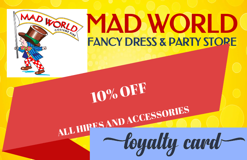 Mad World, ………a success story. Mad World Fancy Dress was born 53 years ago in East Grinstead. We have since expanded into further retail outlets in London, Chelmsford and abroad. Our clients list includes Royalty, Celebrities, Captains of industries, TV Companies, and customers from all walks of life. However, we still believe in good old fashion service and offer the best prices for available. So, if you want the best, it must be –Mad World Fancy Dress.